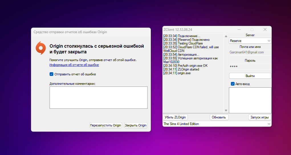 garcimari Posted February 1 Author Posted February 1 Добрый день, спасибо за ответ, от кэша чистила через программу DelOriginCache.bat, пробовала большинство вариантов с форума, ничего не помогает. В безопасном запуске винды удаляла все что связано с антивирусом, ничего не помогает, игра запускается через зетклиент, а злоориджин через зетклиент-нет, подскажите какие еще варианты попробовать? 0 Quote